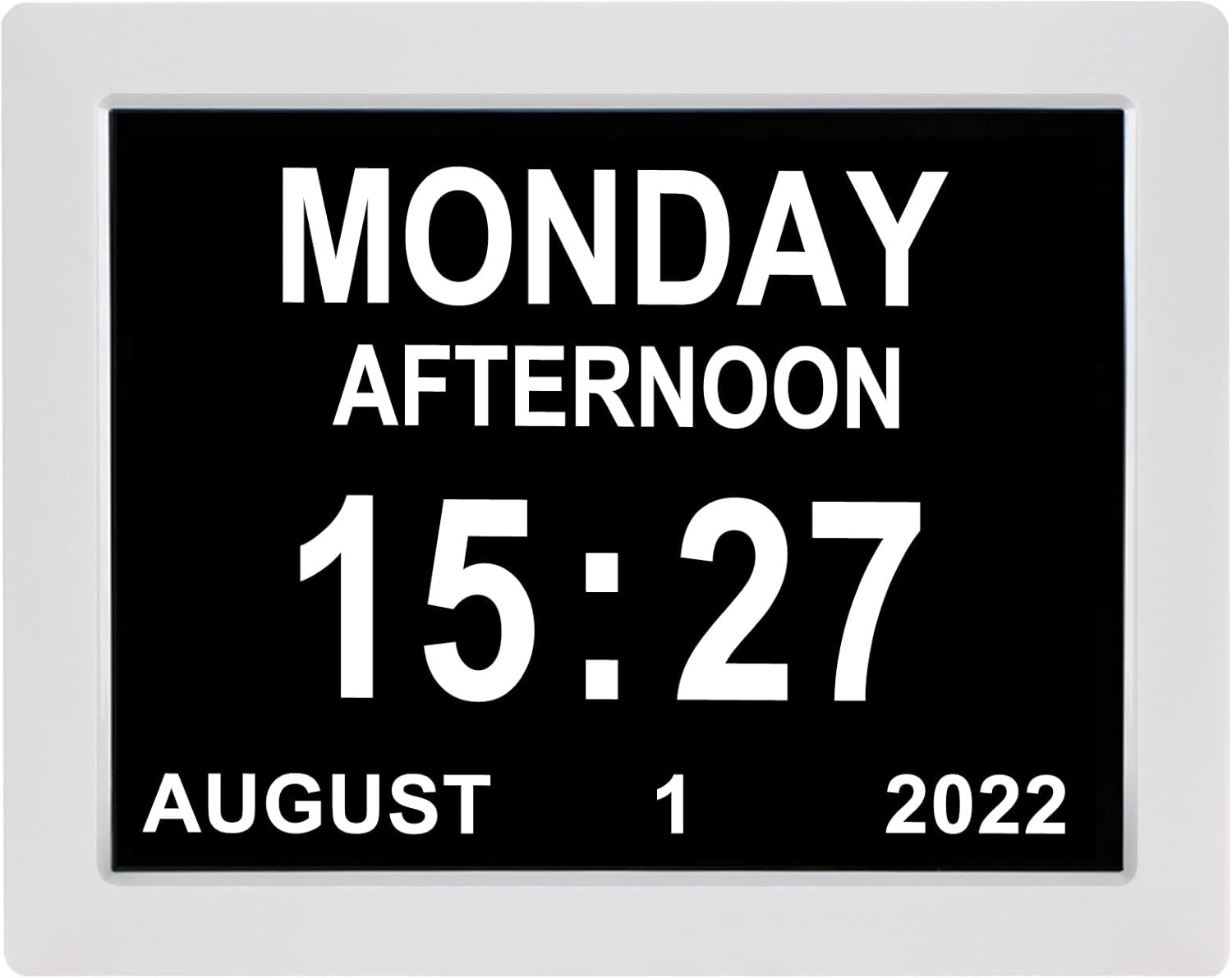 • 【Ultimate clarity】- The 8 inches Calendar Day Clock crystal clear high definition color display ensures a sharp, crisp image displaying the full color spectrum with a 170° viewing angle that can be seen from all sides of the room